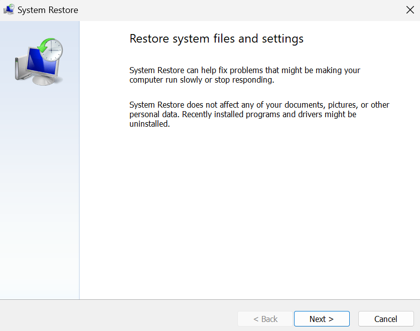 Systeemherstel herstelt uw besturingssysteem terwijl er geen problemen waren. Volg hiervoor de onderstaande stappen: