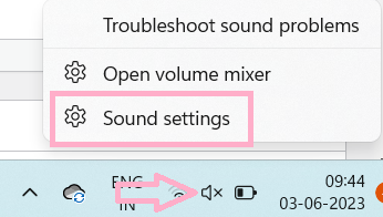1. Klik met de rechtermuisknop op het geluidspictogram in de taakbalk. Selecteer vervolgensGeluidsinstellingen.