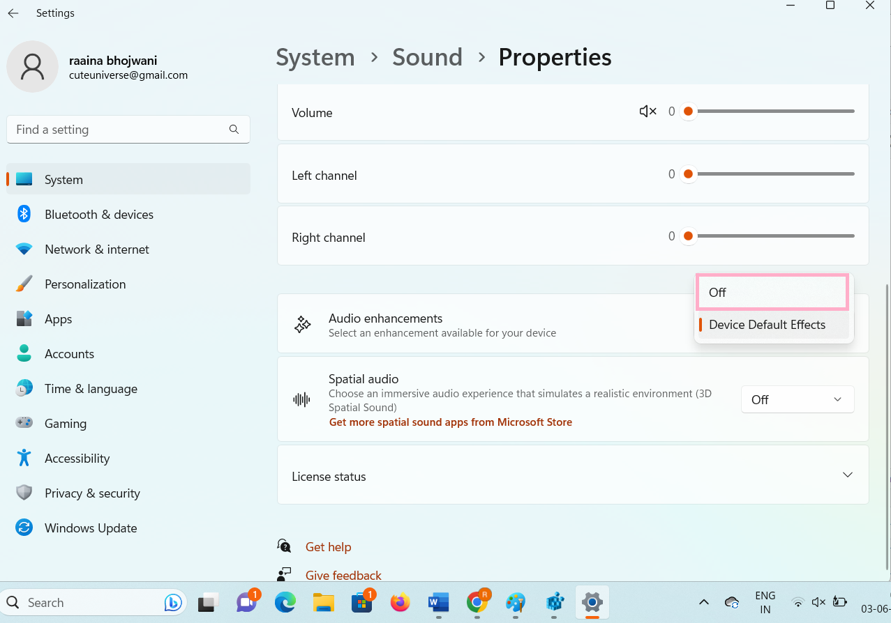 3. Klik vervolgens opAudioverbeteringenen selecteerUit.