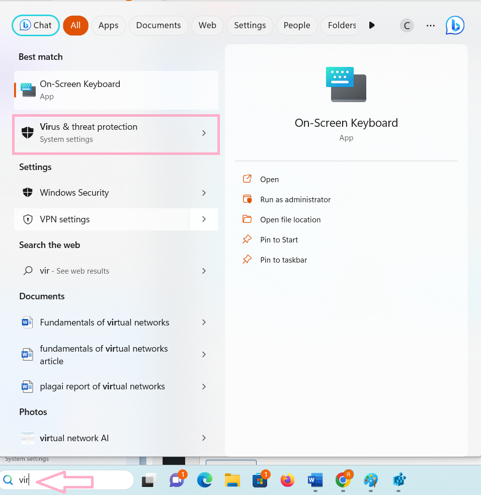 1. Typ Virus in de zoekbalk en open vervolgensBescherming tegen virussen en bedreigingen.