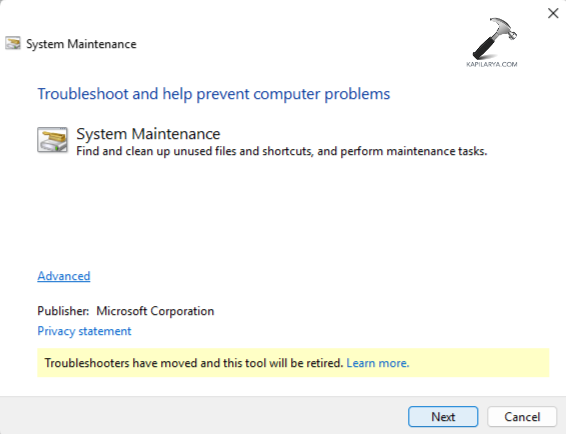 Verder kunnen de gebruikers ook de probleemoplosser voor systeemonderhoud uitvoeren om eventuele problemen met het systeem op te lossen en het probleem op te lossen. Volg hiervoor de onderstaande stappen.