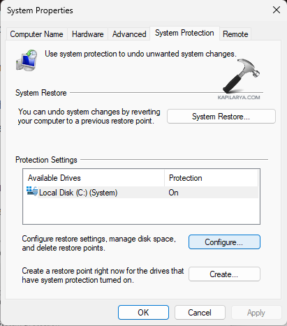 Stap 2-Klik nu onder Beveiligingsinstellingen in het vak Beschikbare schijven op Lokale schijf (C) > Configureren.