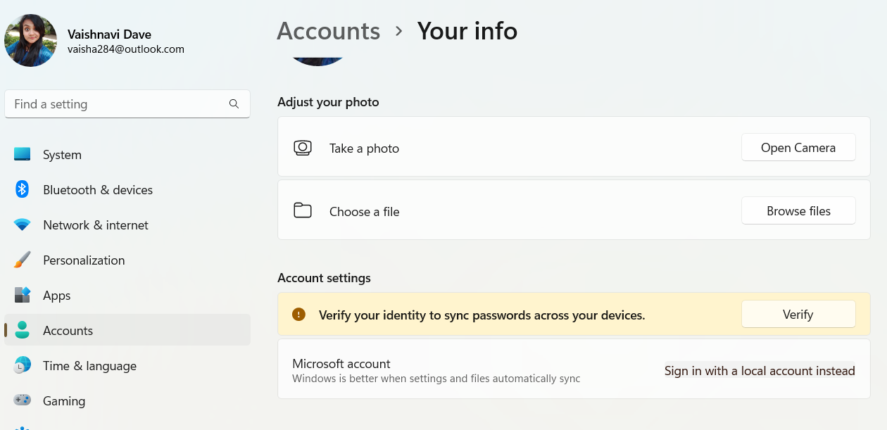 U kunt dit probleem ook oplossen door u aan te melden met een lokaal account (dat niet van Microsoft is). Om dit te doen,