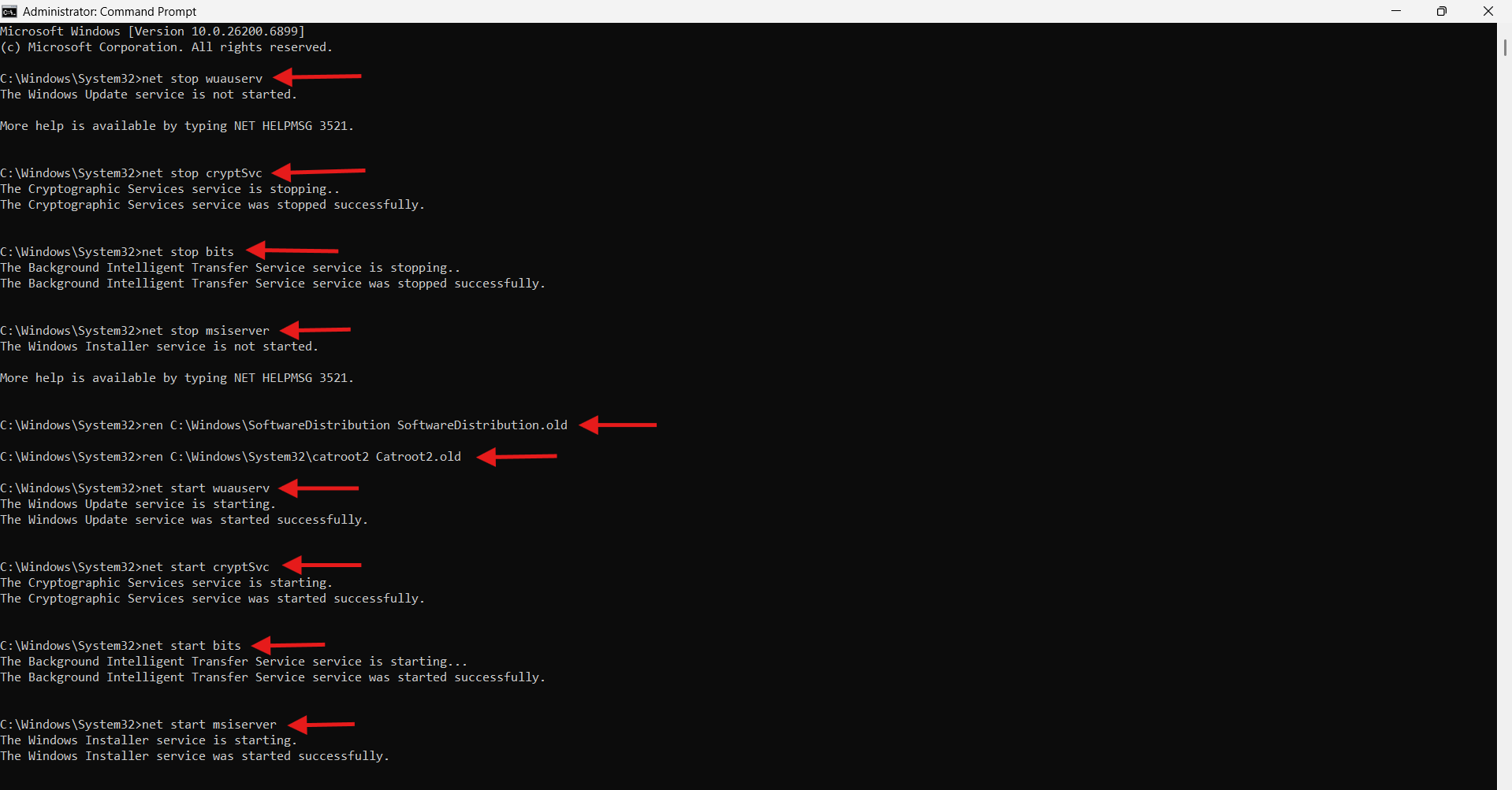 ren C:WindowsSystem32catroot2 Catroot2.old