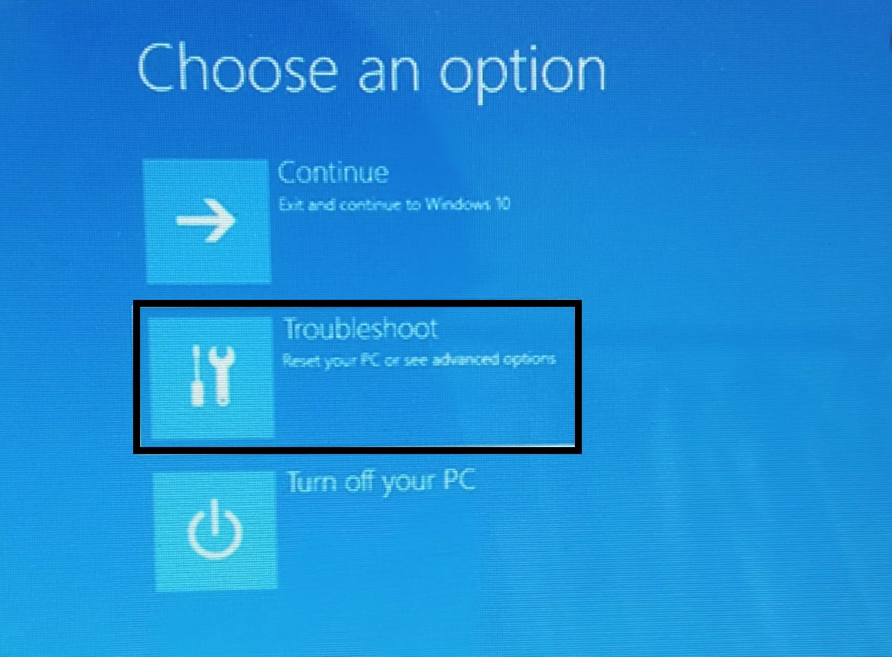 3. Zodra Windows ID opnieuw start, selecteert uProblemen oplossenuit Kies een optiescherm.