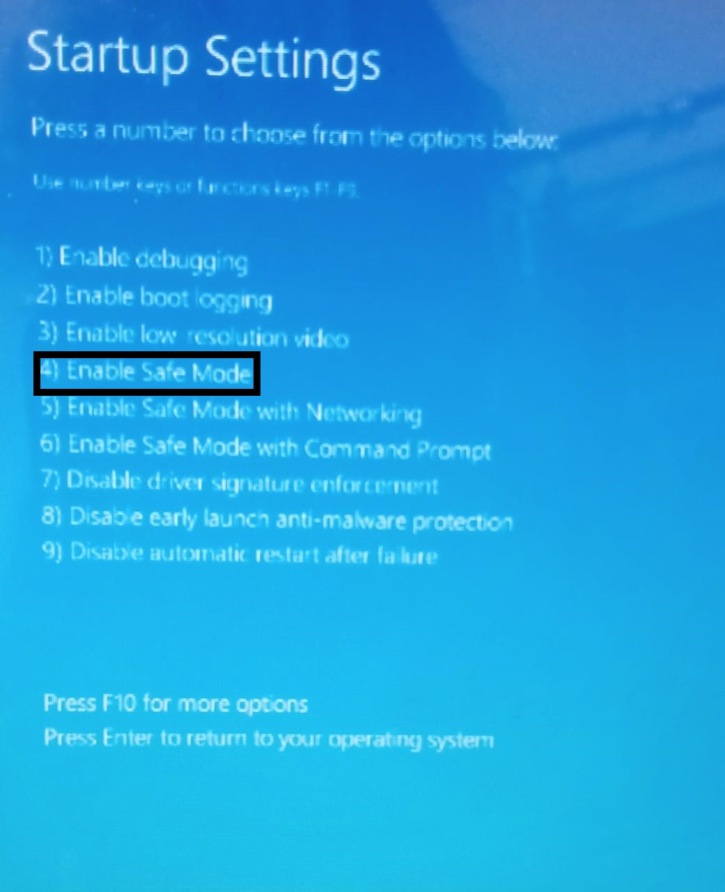 7. Zodra uw apparaat opnieuw is opgestart, moet u op drukkenF4-toetsselecterenSchakel Veilige modus in.