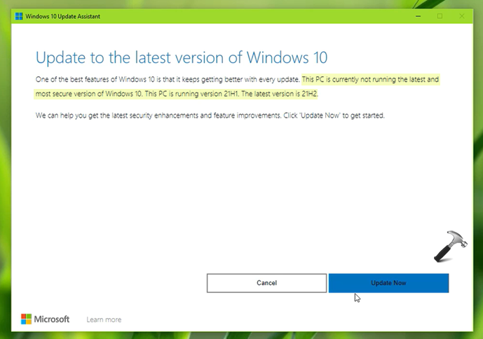 2.Hiermee wordt Windows 10 Update Assistant op uw systeem gedownload. Als het eenmaal is geopend, ziet u dat er op Deze pc wordt momenteel niet de nieuwste en veiligste versie van Windows 10 uitgevoerd. Er wordt ook uw huidige versie vermeld.