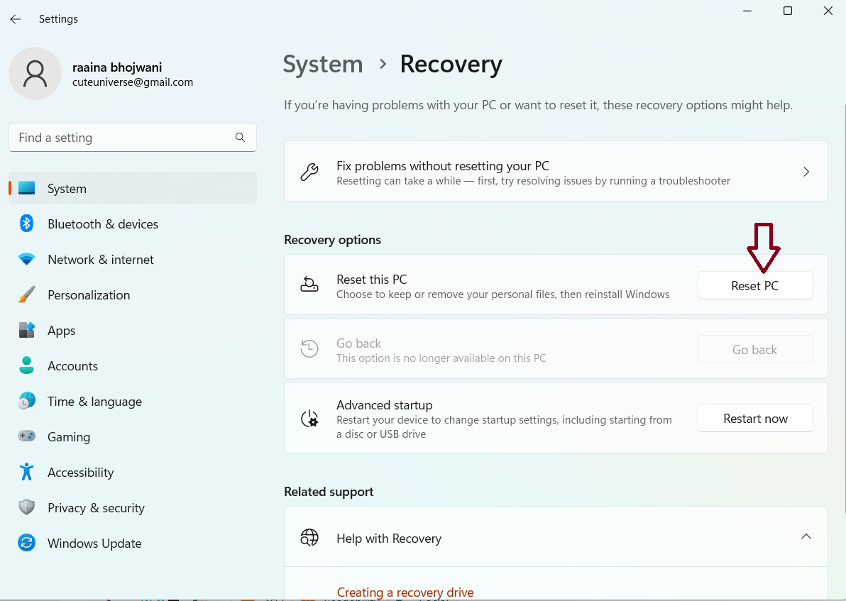 Oplossing 10: reset uw Windows 11-pc om te repareren Er is een probleem met uw Windows Insider-build opgetreden