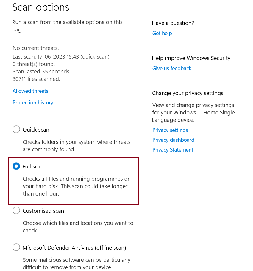 4. Klik op “Volledige scan” > klik vervolgens op de knop “Nu scannen”.