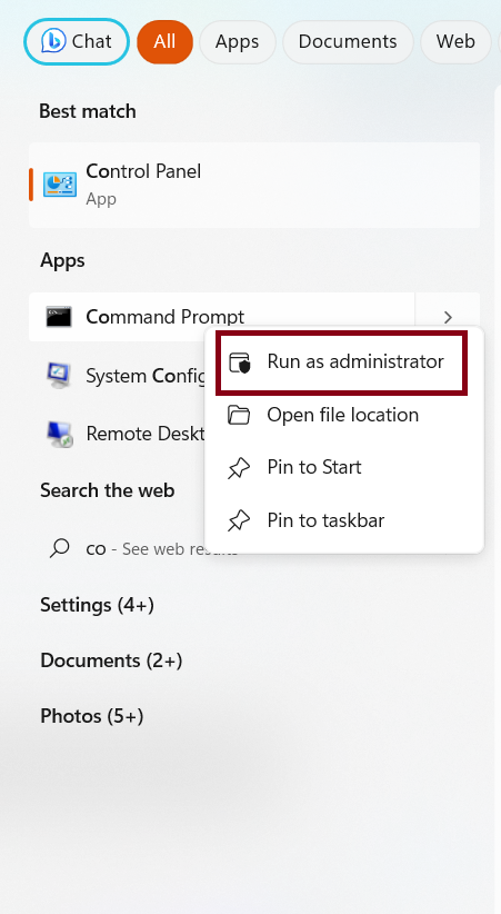 2. Typ deze opdracht en druk op Enter om deze uit te voeren: