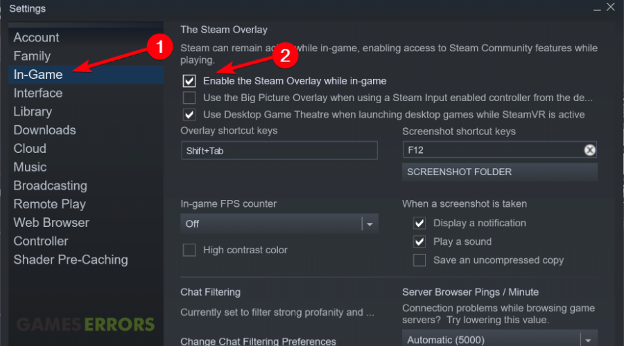 - Haal het vinkje wegSchakel de Steam-overlay interwijl je in het spel bent.