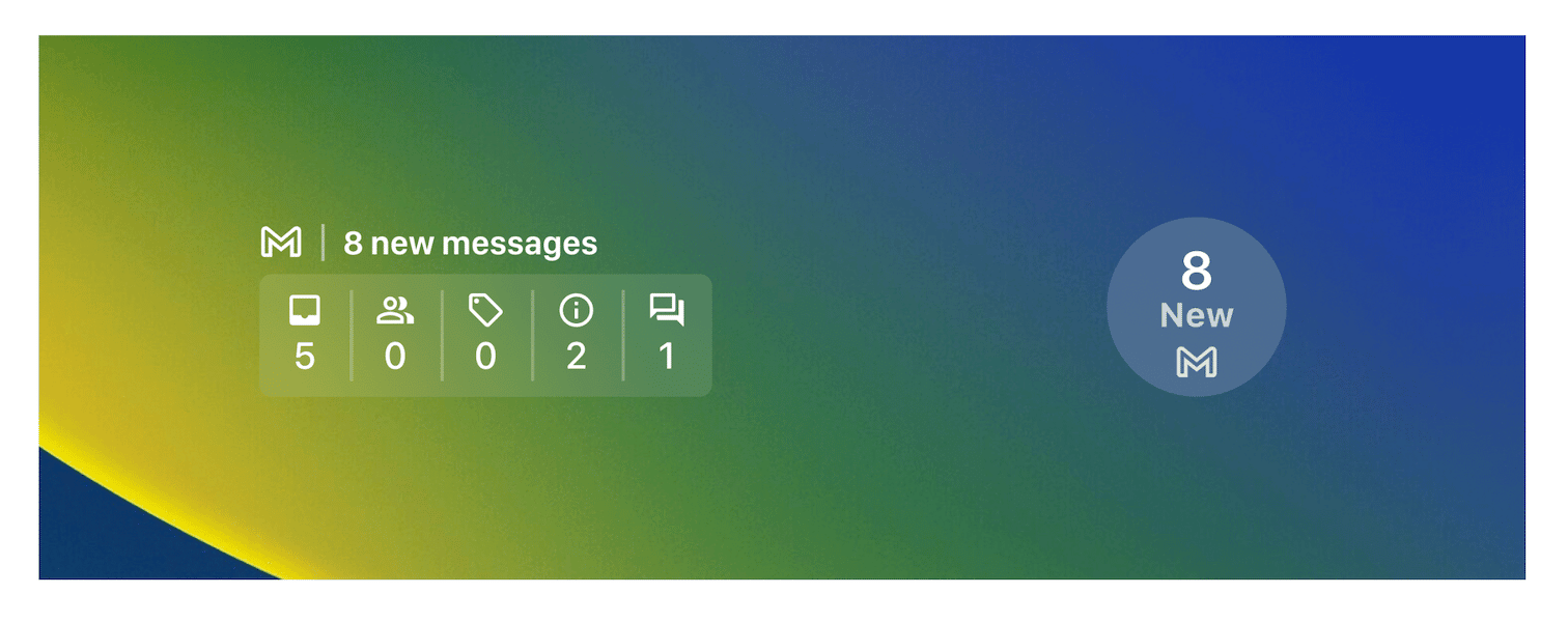 - De vergrendelschermwidget van Gmailtoont de nieuwste e-mails en werkt het aantal nieuwe berichten in de inbox automatisch bij. Het kan ook worden aangepast om inboxcategorieën zoals updates of sociaal weer te geven.