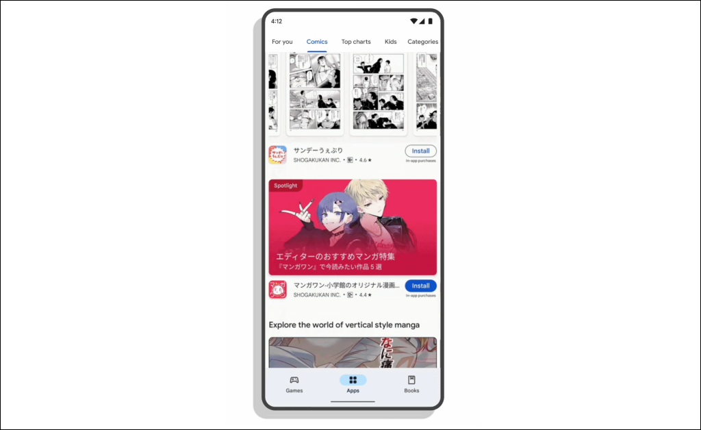 Er zal bijvoorbeeld een op cricket gerichte beheerde ruimte beschikbaar zijn voor gebruikers in India om cricketgerelateerde inhoud van relevante apps te verkennen. Op dezelfde manier hebben gebruikers in Japan toegang tot stripgerelateerde inhoud (live-evenementen, gratis previews van mangahoofdstukken, enz.) in speciaal samengestelde ruimtes voor strips.
