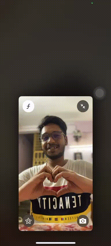 De hartreactie is een van de gebaarreacties waarbij gebruikers beide handen moeten gebruiken om een hartvorm te creëren. Zodra de app het gebaar detecteert, wordt een animatie met vliegende harten geactiveerd.