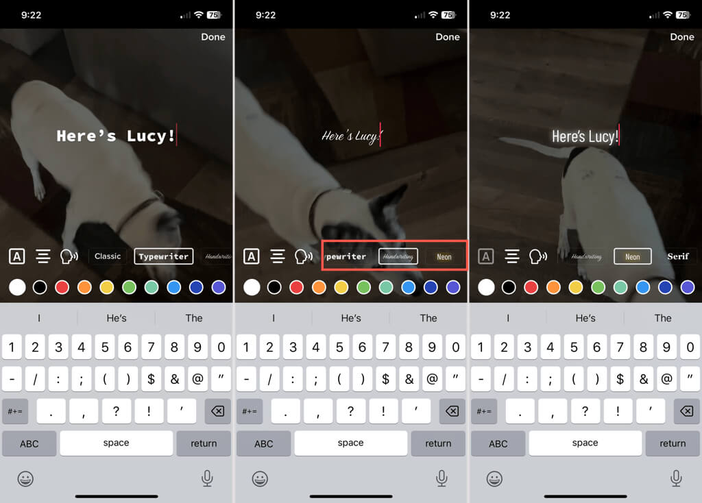 - Kies aan de rechterkant de lettertypestijl die u wilt gebruiken. Je ziet opties voor Klassiek, Typemachine, Handschrift, Neon en Serif.