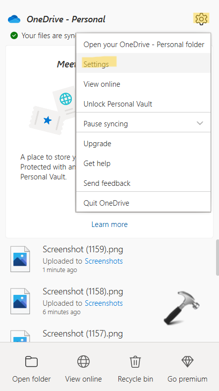 1.Klik op het icoon vanOneDriveaanwezig op de taakbalk. Klik daarna op de tandwielknop vanHulp en instellingenrechtsboven aanwezig.