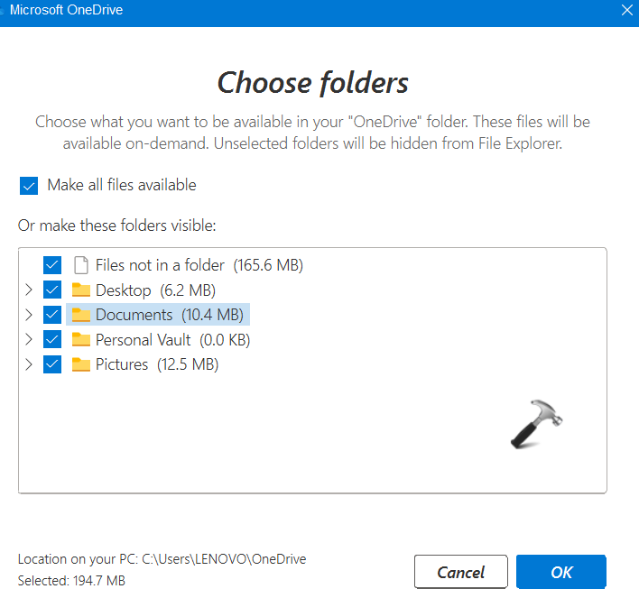 Methode 5: Selecteer de OneDrive-mappen die u wilt synchroniseren