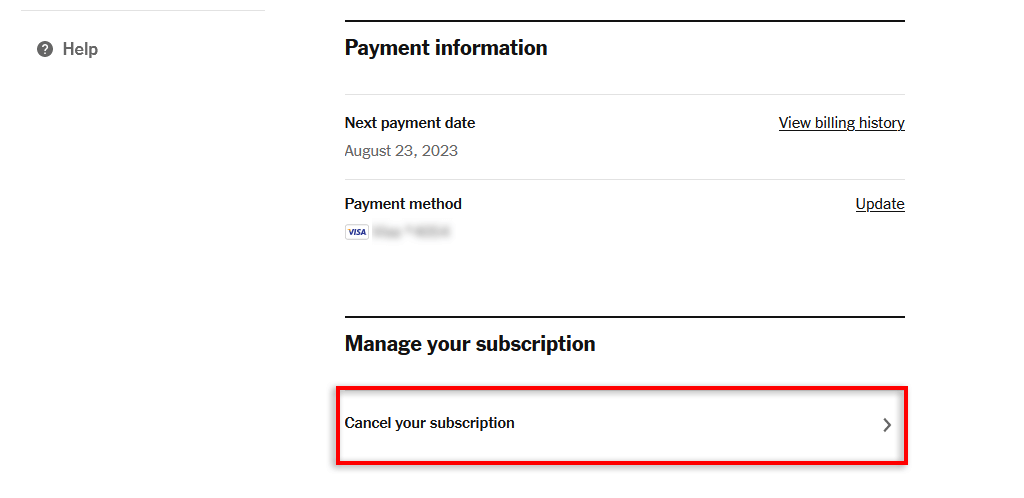 De derde manier om u af te melden bij The Times is door in te loggen op uw account op de website van NY Times. Helaas dwingt The New York Times je om de kwestie met een klantenservicemedewerker te bespreken, wat het hele proces relatief vervelend maakt.
