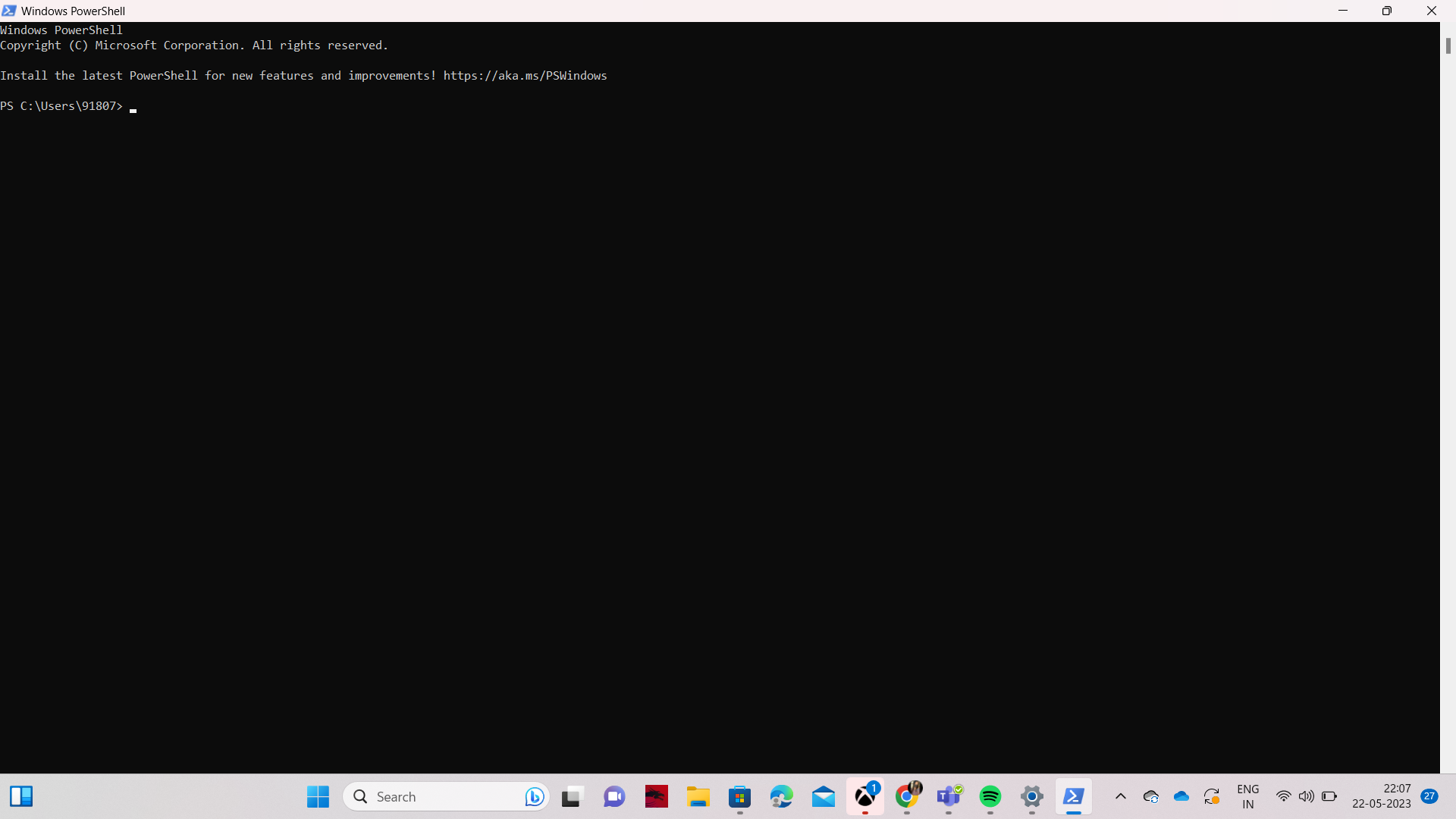 - Typ in het PowerShell-venster de volgende opdracht en druk op Enter: