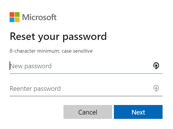 - Vervolgens wordt u gevraagd een nieuw wachtwoord in te voeren en te selecterenVolgendeom het proces te voltooien.