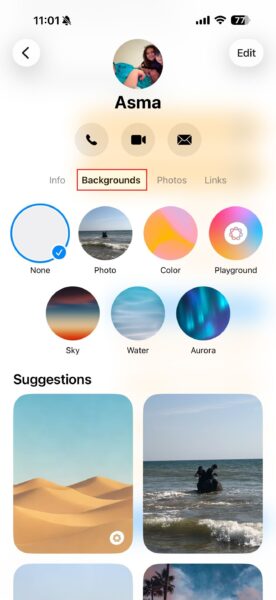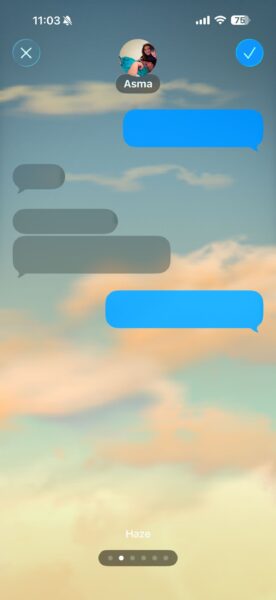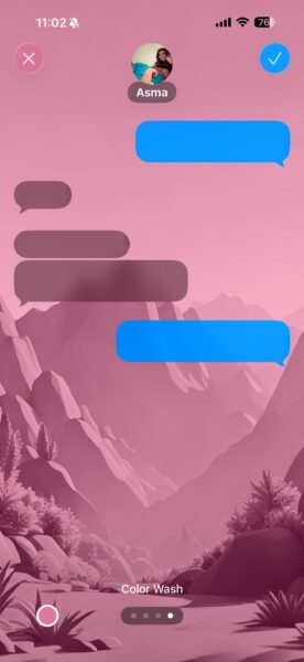 Als u ooit van gedachten verandert, kunt u terugkeren naar het menu Achtergronden en een nieuw ontwerp selecteren of de chat terugzetten naar de klassieke iMessage-look. Apple heeft het proces zo ontworpen dat het licht van gewicht is, zodat het wisselen van achtergrond geen invloed heeft op je chatgeschiedenis of berichtensynchronisatie.
