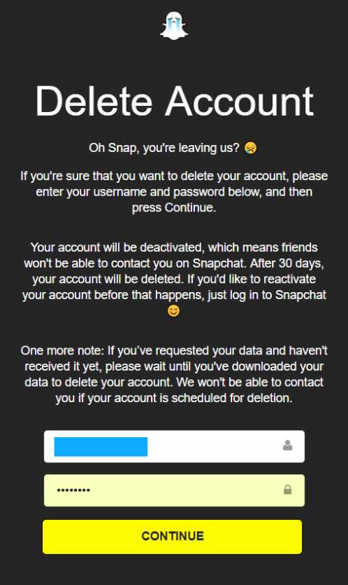 Houd er rekening mee dat zodra je je account hebt verwijderd, de gebruikersnaam die je had verouderd is en niet meer beschikbaar zal zijn op Snapchat.Volgens het beleid van de app kan de gebruikersnaam, wanneer u uw gegevens verwijdert, niet langer door andere gebruikers worden gebruikt. Denk dus goed na over wat u doet en wees voorzichtig als u uw oude account verwijdert.