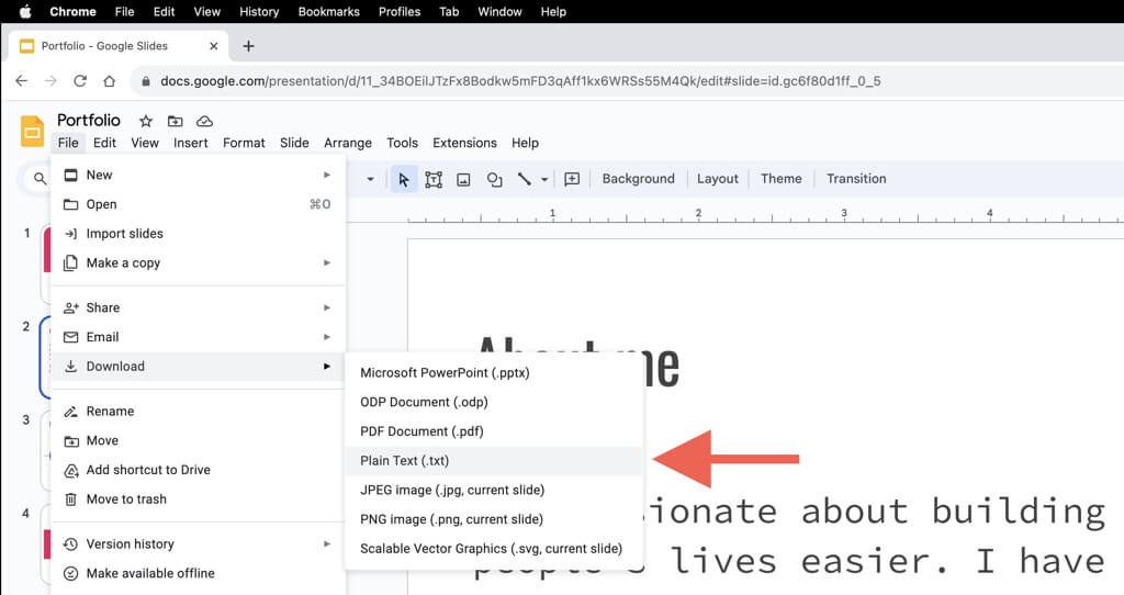 Een Google Presentaties-presentatie downloaden in de .TXT-indeling: