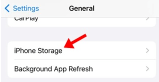 Stap 3:Zoek en tik in de Algemene instellingen op 'iPhone-opslag'.