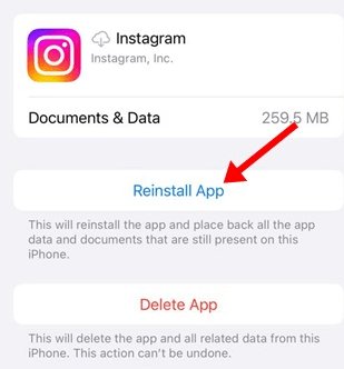 Stap 7:Nadat de app is verwijderd, tikt u op 'App opnieuw installeren'.