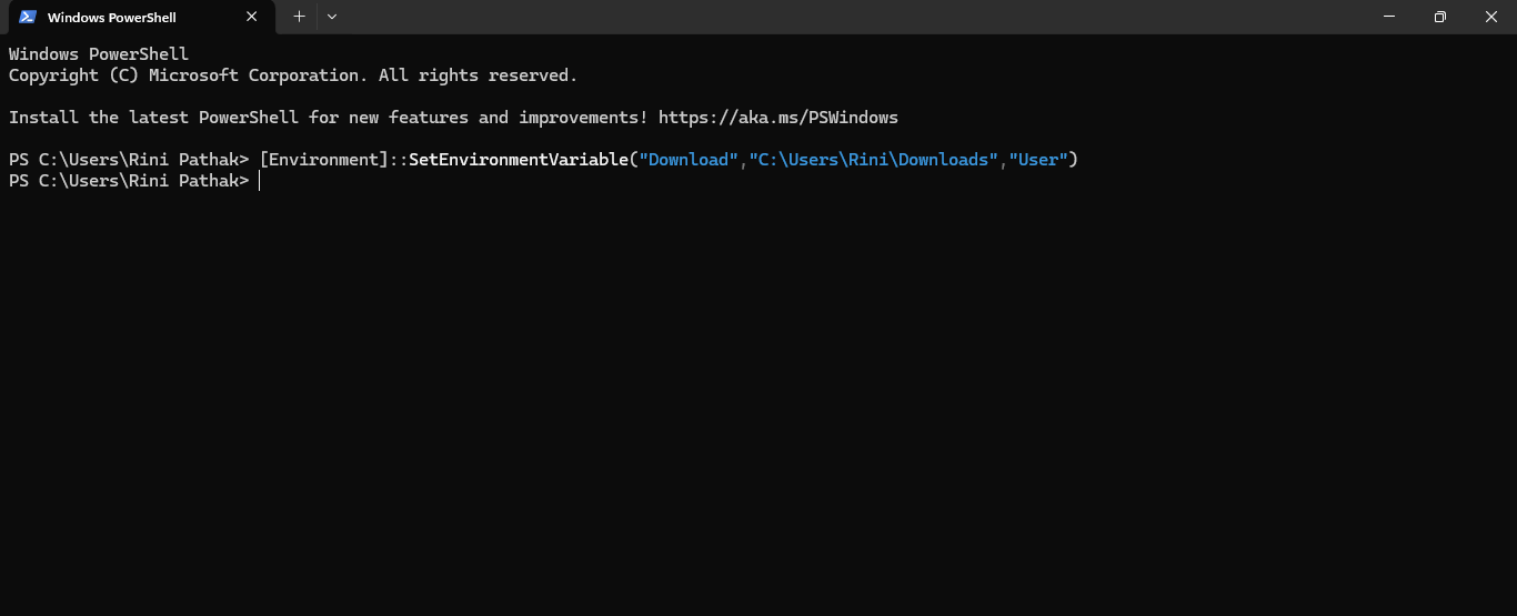 De onderstaande stappen helpen bij het maken van nieuwe gebruikersomgevingsvariabelen in PowerShell.