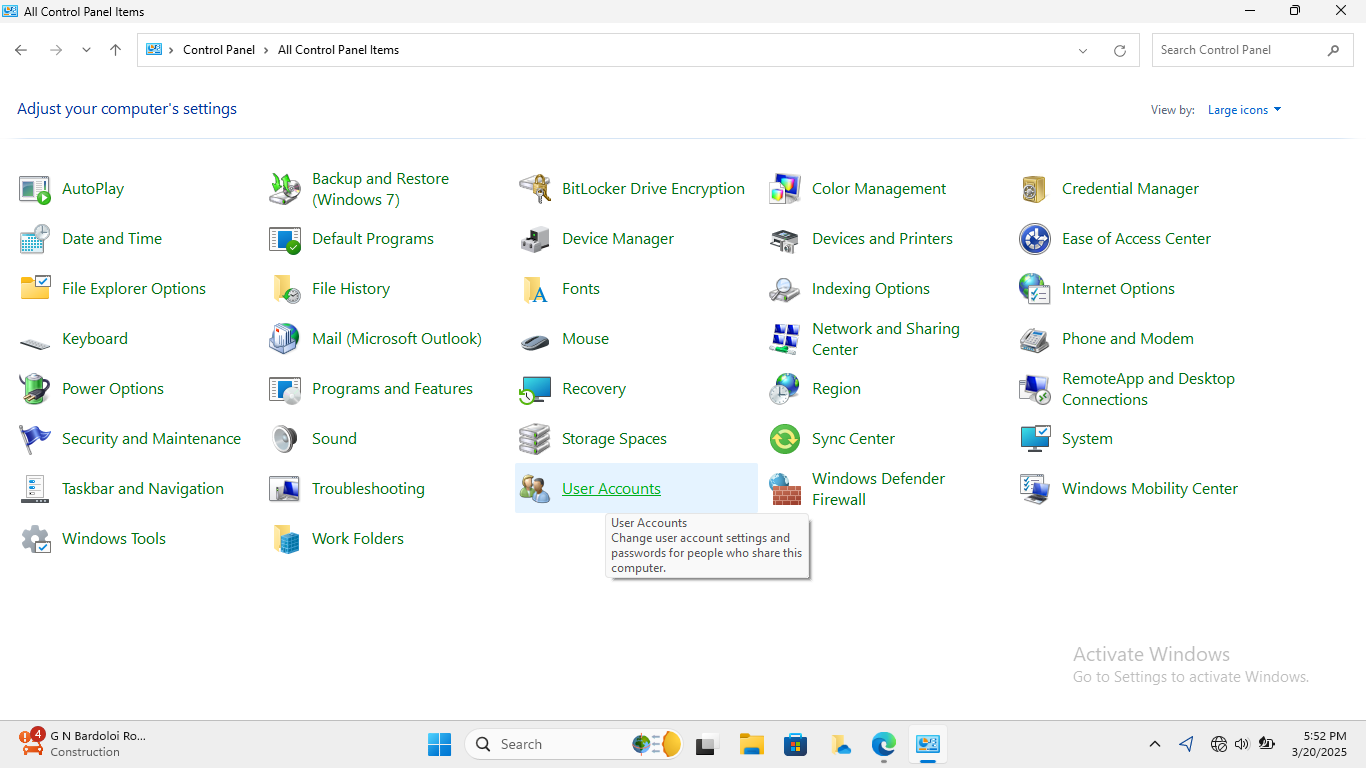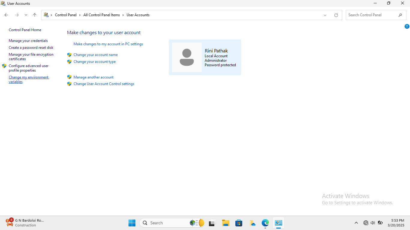 Stap 1-Ga eerst naar Configuratiescherm > Gebruikersaccounts (weergeven via pictogram) > Mijn omgevingsvariabelen wijzigen.