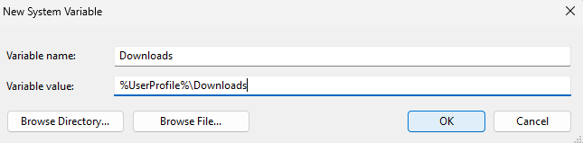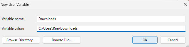 Stap 3-Voer opnieuw een variabelenaam en -waarde in. Als u bovendien een directory en een bestand voor de vereiste variabelenaam en -waarde wilt zoeken en lokaliseren, selecteert u Bladeren door map en Bladeren door bestand.