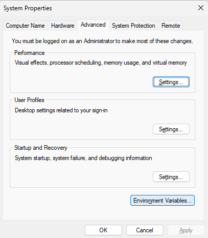 rundll32.exe sysdm.cpl,EditEnvironmentVariables