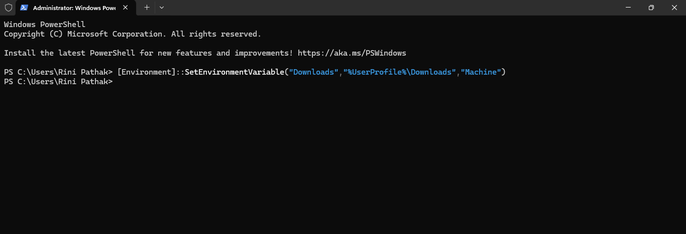 Methode 3: Nieuwe gebruikersomgevingsvariabelen maken in PowerShell