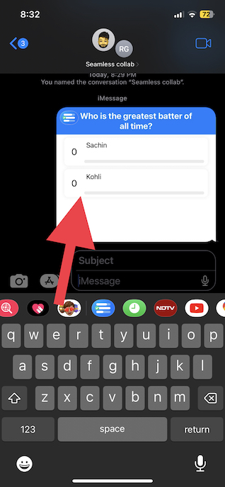 3.Veeg vervolgens naar links in de app-lade om toegang te krijgen tot dePolls voor iMessagepictogram en selecteer het.