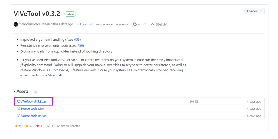 1.Waarschijnlijk beschikt u al over de ViveTool. Als u dat niet doet, downloadt u het van deGitHub-pagina.