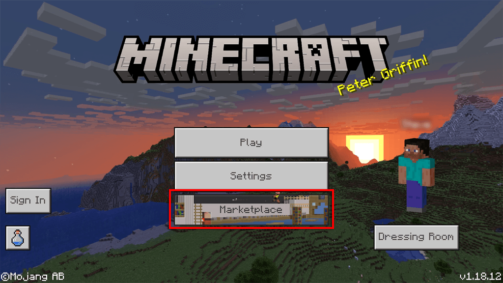 - LaunchMinecraften selecteerMarktplaatsvanuit het hoofdmenu.