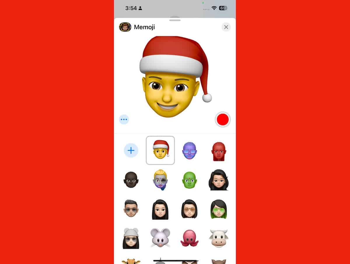 - Tik op de knop “+” in de Memoji-app of Sticker-app om een aangepast kerstmanpersonage voor de feestdagen te maken.