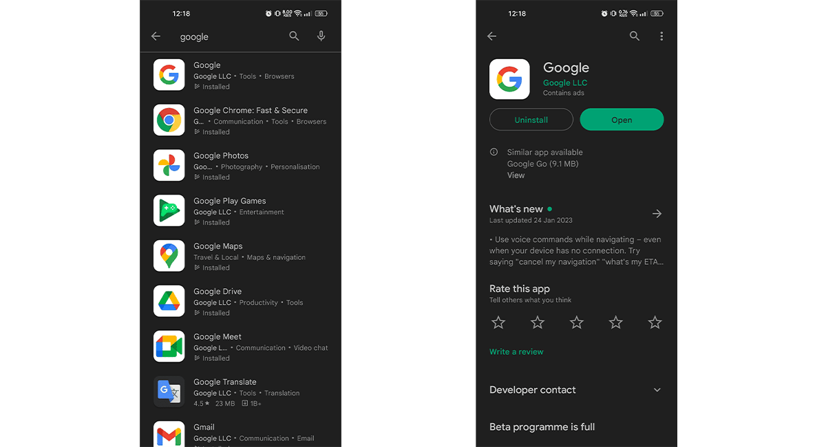 - Open Google Play Store > tik op de zoekbalk en zoek naar Google > download de Google-app.