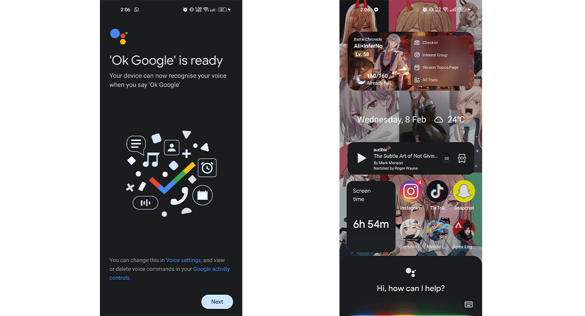 - Als je klaar bent, ga je gewoon terug naar het startscherm van je telefoon> zeg hardop "Hey Google" en de Google Assistent verschijnt.