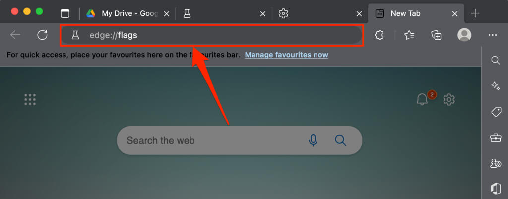 - Open Microsoft Edge, plakrand://vlaggenin de adresbalk en druk opBinnenkomenofOpbrengst(Mac).