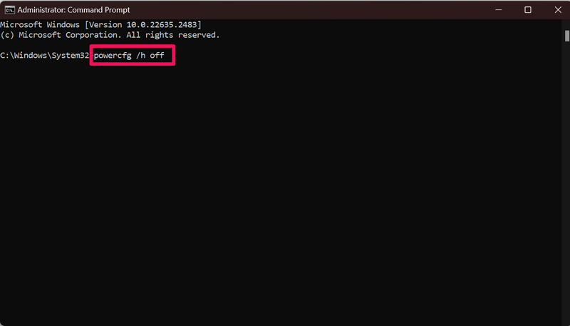 powercfg /h onDus ja, op deze manier kunt u de opdrachtprompttool op uw Windows 11-pc of laptop gebruiken om de functie Snel opstarten uit en in te schakelen.