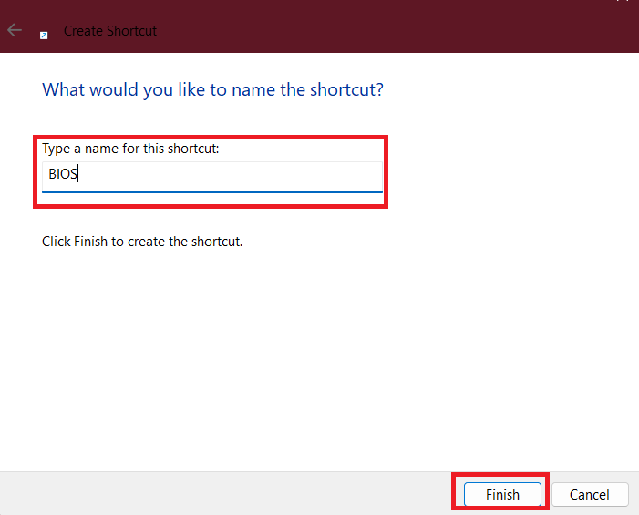 5.Geef de snelkoppeling een naam en klik op deFinishknop om het te maken.