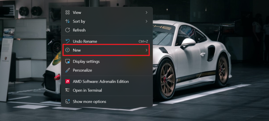 2.Klik opNieuwin het contextmenu.