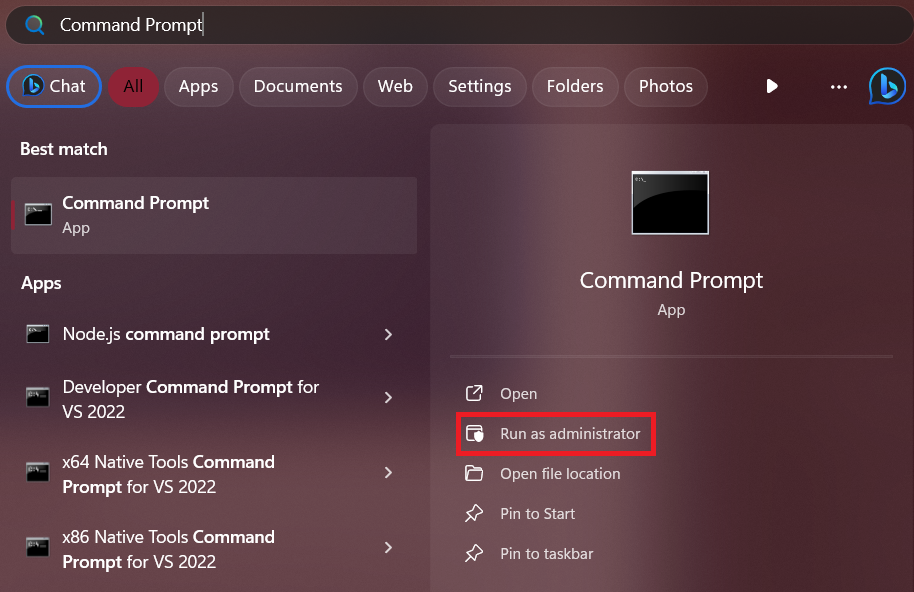 1.Open deStartmenuen zoek naarOpdrachtprompt.