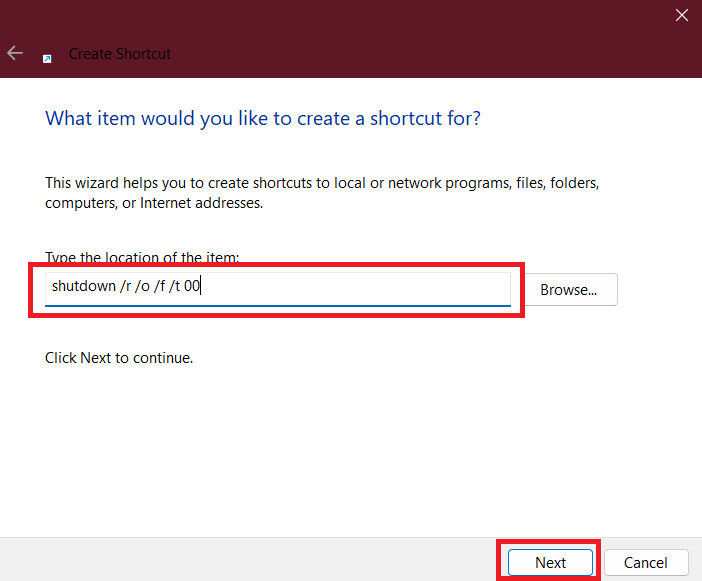 shutdown /r /o /f /t 00