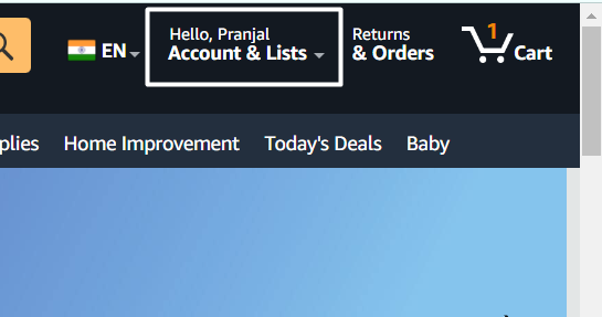 1.Klikom naar toe te gaanDe officiële site van Amazonen klik opAccount en lijstenin de rechterbovenhoek van het tabblad.