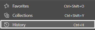 2.Selecteer deGeschiedenisoptie uit het vervolgkeuzemenu om door te gaan naar de browserGeschiedenissectie.