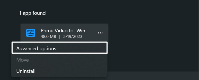 3.Klik op dedrie puntjes (…)naast de app en selecteerGeavanceerde optiesuit het menu.