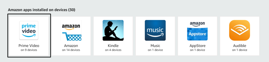 3.Klik op dePrime-videooptie onderAmazon-apps geïnstalleerd op de apparatenom al uw apparaten te bekijken.